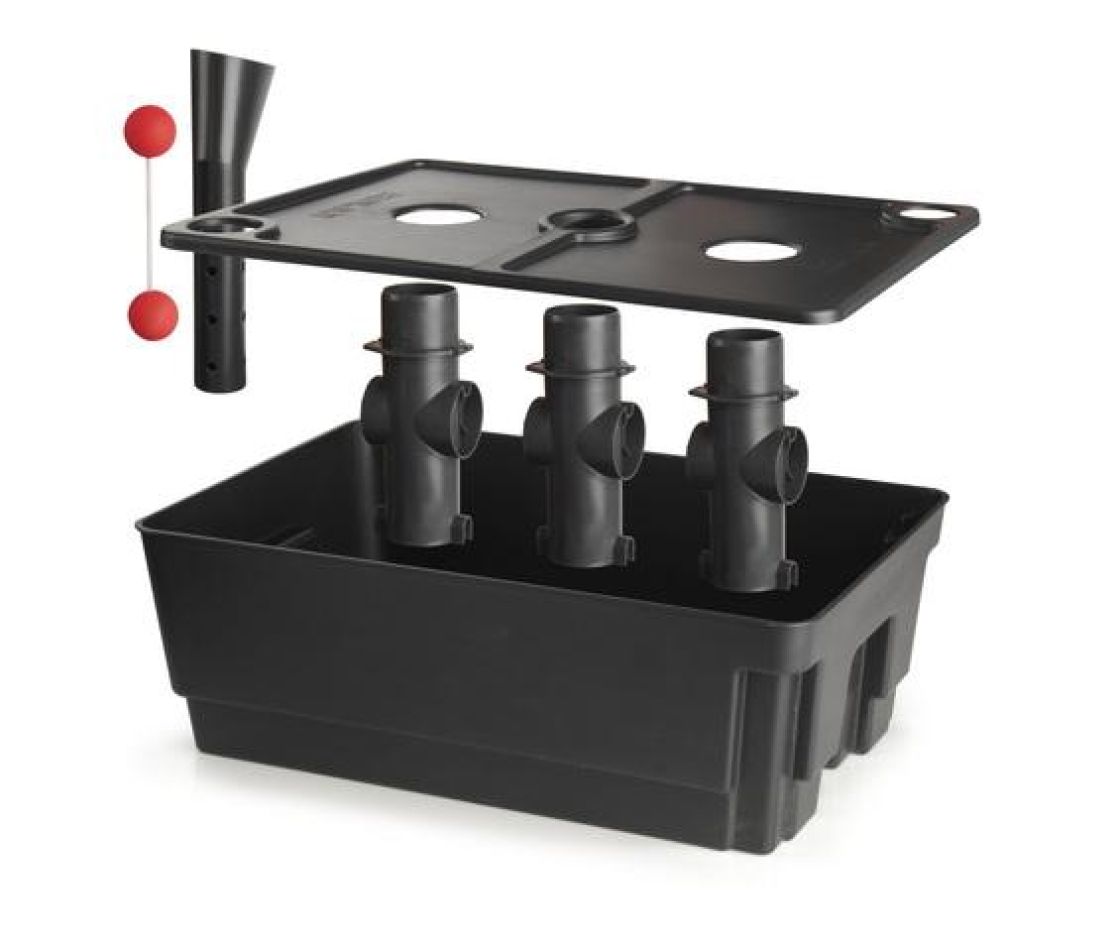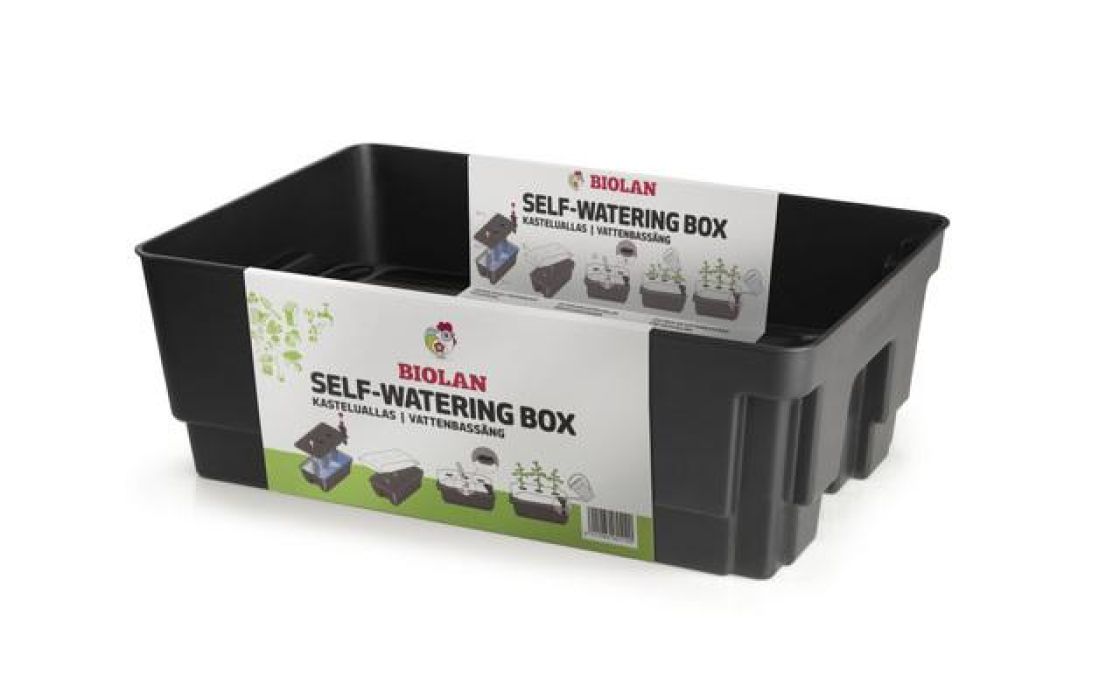 Myös päältä kasteltaessa ylimääräinen vesi valuu laatikkoon. Kasteluallas helpottaa vihannesviljelyä parvekkeella ja terassilla, kun valumavedet eivät tahri lattiaa.