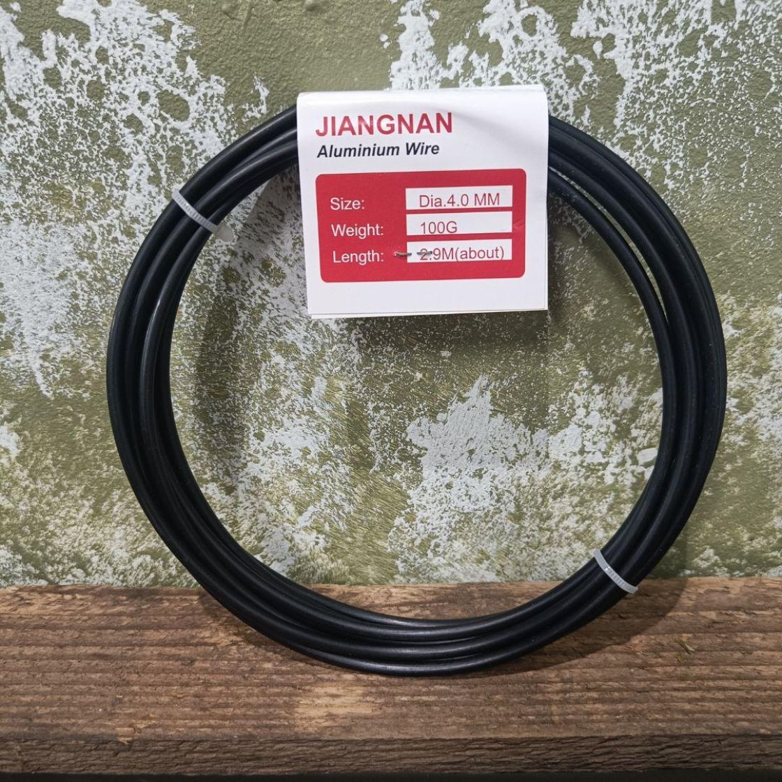 4 millimetrin paksuinen, musta alumiinilanka oksien taivuttamisen avuksi.