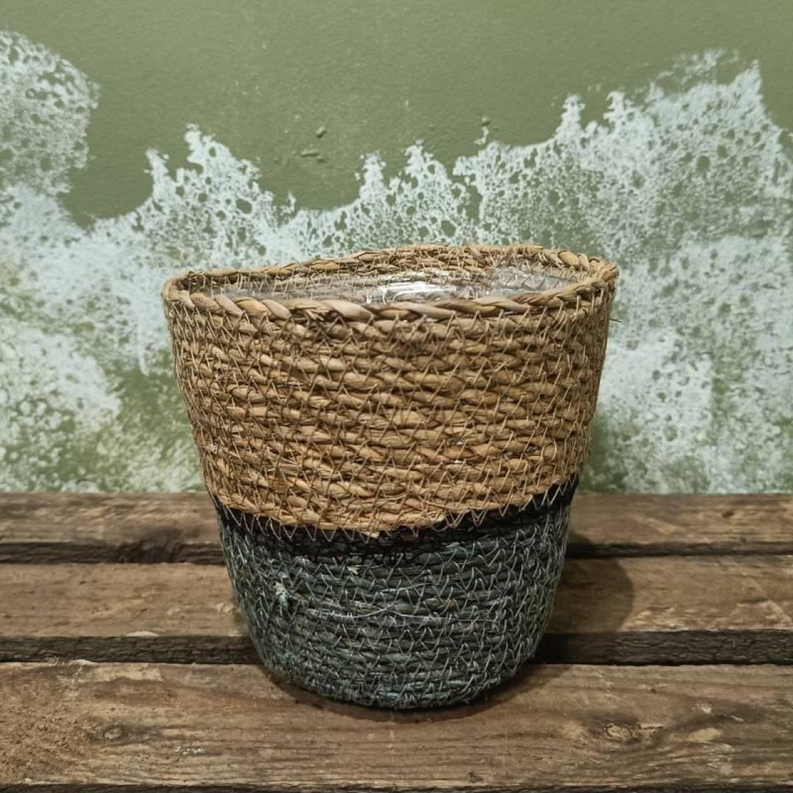 Sisältä muovitettu suojaruukku, jonka alaosa on värjätty sinertäväksi. Ruukun sisälle mahtuu 12 cm istutusruukku.