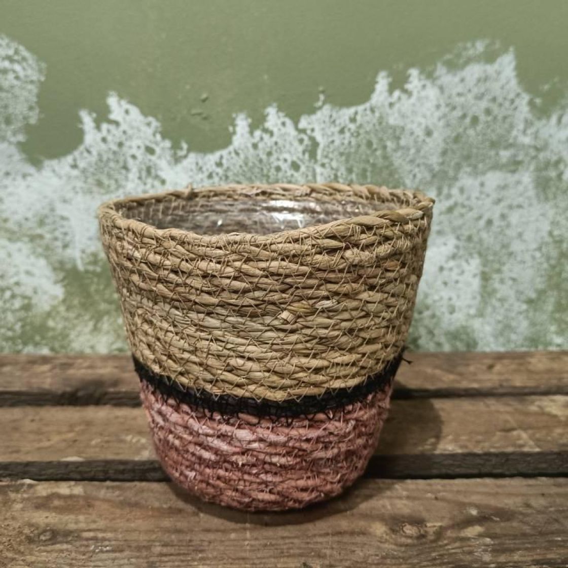 Sisältä muovitettu suojaruukku, jonka alaosa on värjätty punertavaksi. Ruukun sisälle mahtuu 12 cm istutusruukku.