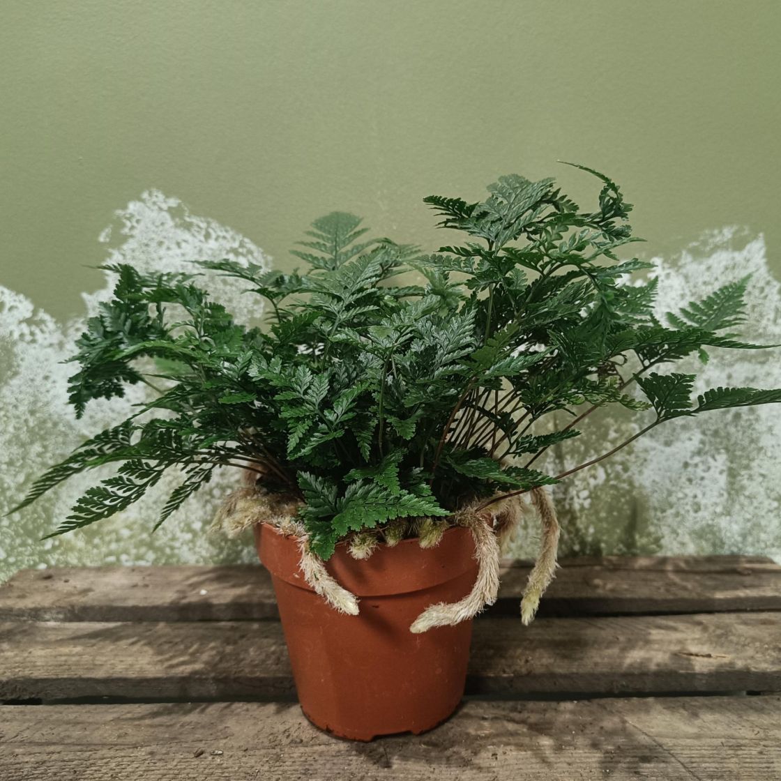 Tämän saniaisen "käpälät" ovat jäykät ja ruukun reunojen ulkopuolella. Käyttämässämme pakkaustavassa kasvia suojaava tukipahvi kiinnitetään ruukun reunoihin ja tämän kasvit kohdalla se saattaa tarkoittaa sitä, että käpälät siitä kärsivät. Otathan tämän huomioon tilausta tehdessäsi.