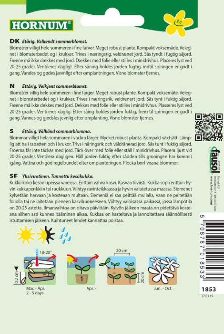 Kukkii koko kesän upeissa väreissä. Erittäin vahva kasvi. Kasvaa tiiviisti. Kukka sopii erittäin hyvin kukkapenkkiin tai ruukkuun. Viihtyy ravinteikkaassa ja hyvin valutetussa maassa. Siemenet kylvetään harvaan ja kosteaan multaan. Siemeniä ei saa peittää mullalla, vaan ne peitetään foliolla tai ne laitetaan pieneen kasvihuoneeseen. Viihtyy valoisassa paikassa, jossa lämpötila on 20-25 astetta. Ilmanvaihtoa on oltava päivittäin. Kylvön jälkeen maata on pidettävä kosteana siihen asti kunnes itääminen alkaa. Kukkaa on kasteltava ja lannoitettava säännöllisesti istuttamisen jälkeen. Kuihtuneet lehdet kannattaa poistaa.