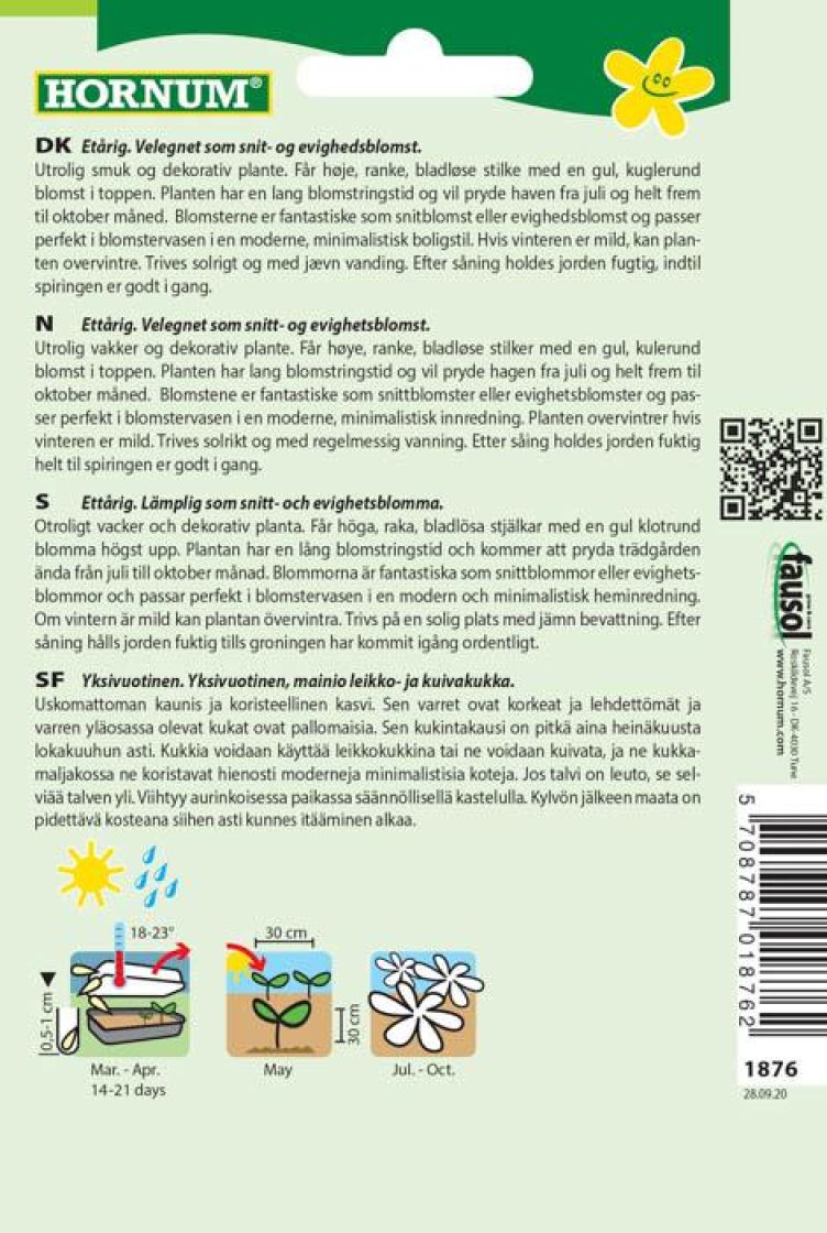 Yksivuotinen. Yksivuotinen, mainio leikko- ja kuivakukka.