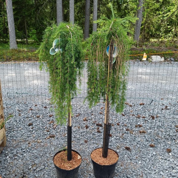 Vartettu riippuvalatvuksinen lehtikuusi. Keväällä limenvihreät neulaset, syysväri kullankeltainen. Pudottaa neulaset syksyllä. Läpäisevä kasvualusta eduksi.