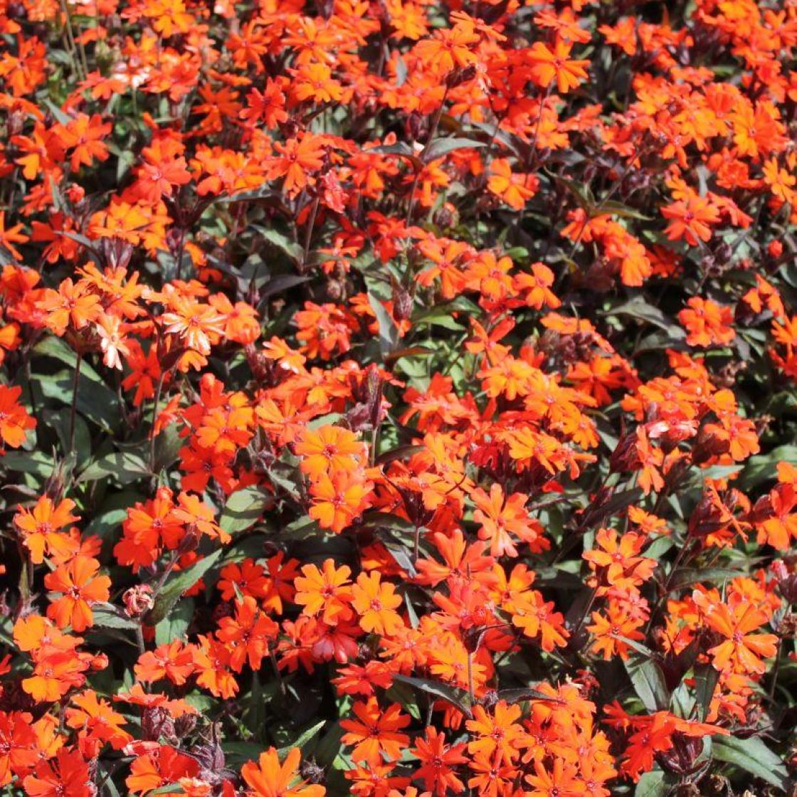 Perenna, jolla on tummanvihreät lehdet ja leiskuvanoranssi kukinto.
