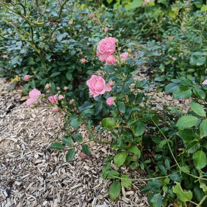 Vaaleanpunakukkainen matala ruusu