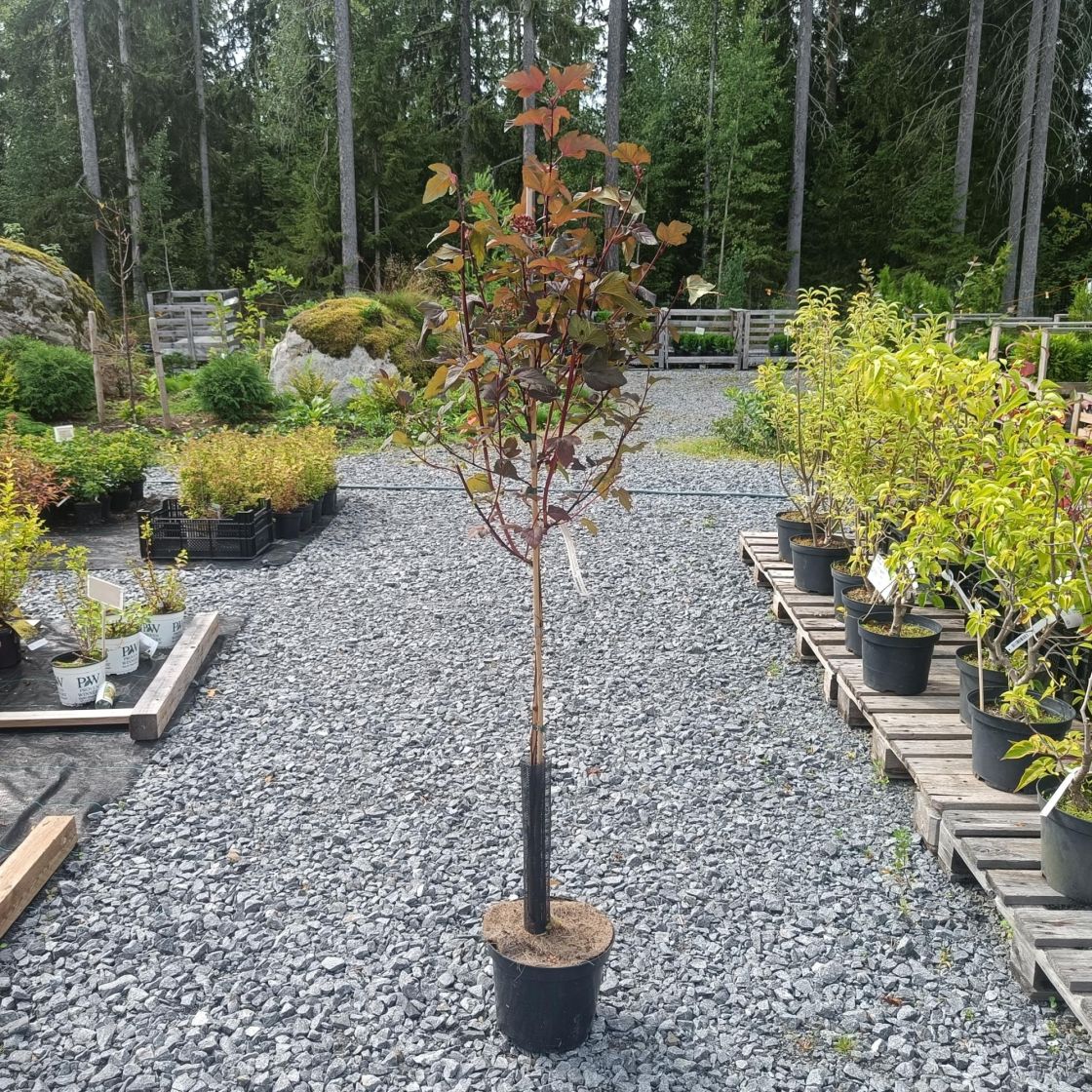 Läpi kesän punaiset lehdet omaava pikkupuu. Kukkii vaaleanpunaisena alkukesästä / VAIN NOUTO