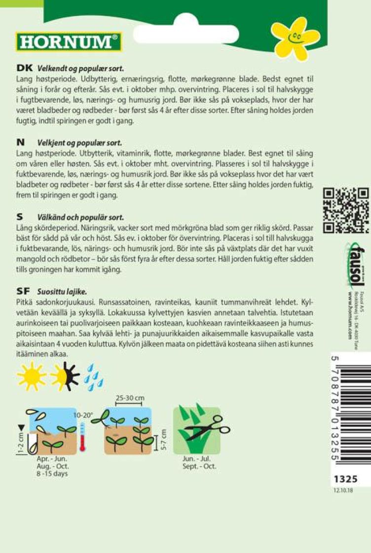 Pitkä sadonkorjuukausi. Runsassatoinen, ravinteikas, kauniit tummanvihreät lehdet. Kyl- vetään keväällä ja syksyllä. Lokakuussa kylvettyjen kasvien annetaan talvehtia. Istutetaan aurinkoiseen tai puolivarjoiseen paikkaan kosteaan, kuohkeaan ravinteikkaaseen ja humuspitoiseen maahan. Saa kylvää lehti- ja punajuurikkaiden aikaisemmalle kasvupaikalle vasta aikaisintaan 4 vuoden kuluttua. Kylvön jälkeen maata on pidettävä kosteana siihen asti kunnes itääminen alkaa.