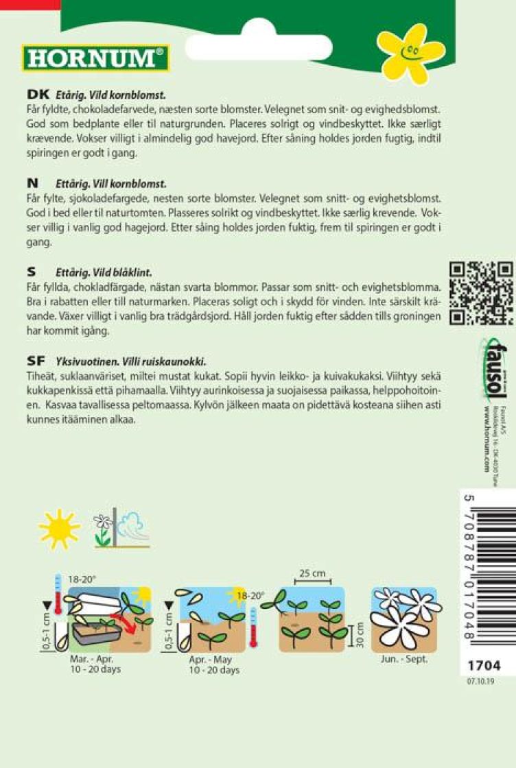 Tiheät, suklaanväriset, miltei mustat kukat. Sopii hyvin leikko- ja kuivakukaksi. Viihtyy sekä kukkapenkissä että pihamaalla. Viihtyy aurinkoisessa ja suojaisessa paikassa, helppohoitoinen. Kasvaa tavallisessa peltomaassa. Kylvön jälkeen maata on pidettävä kosteana siihen asti kunnes itääminen alkaa.