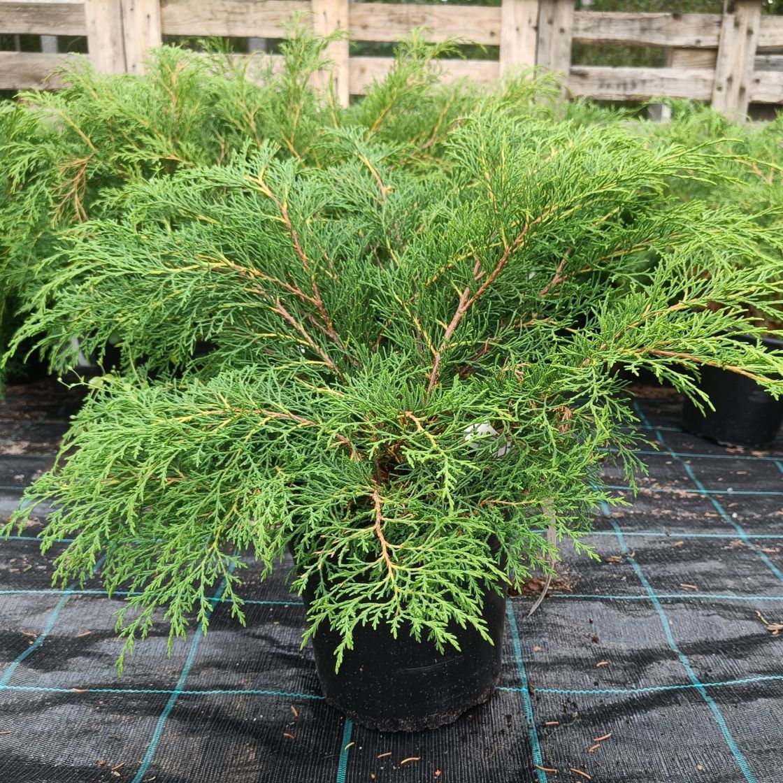 Matala, peittävä havupensas. Väri vaihtuu talvella punaruskeaksi ja palaa keväällä tumman vihreäksi.